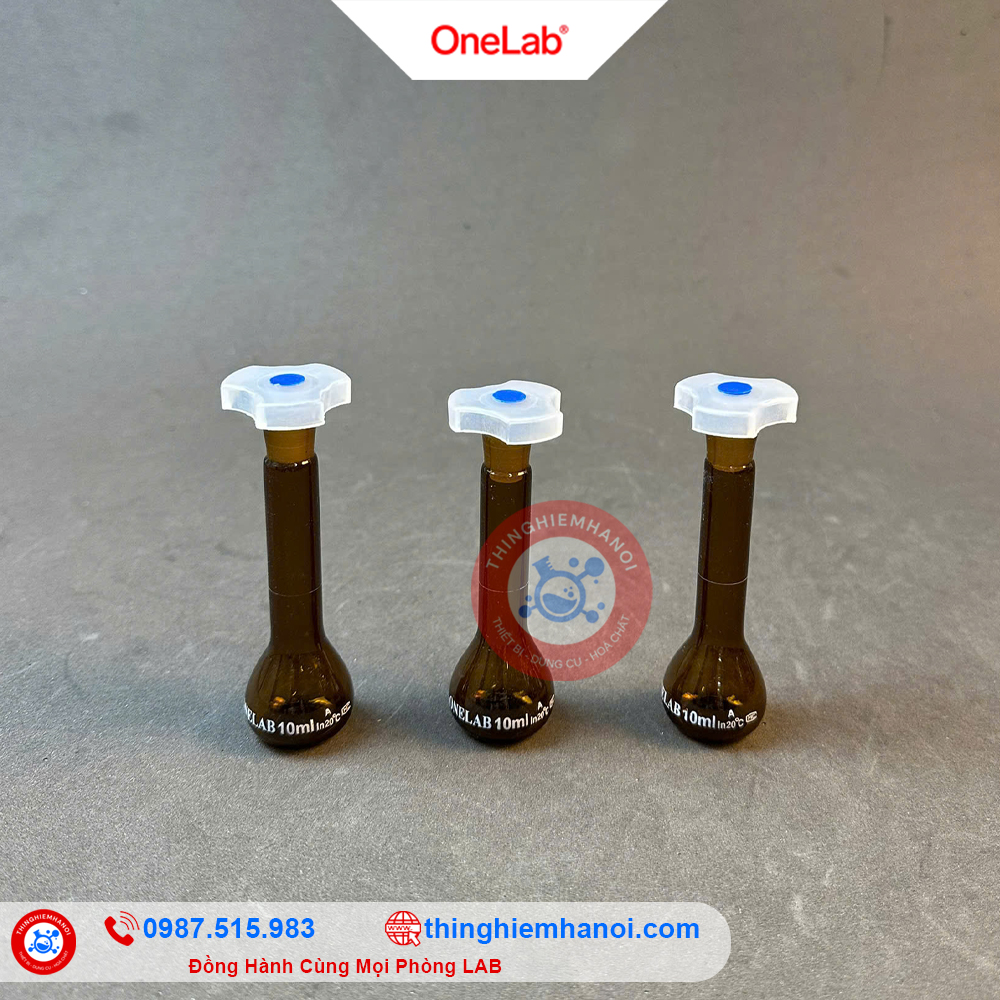 | Tên sản phẩm | Bình định mức nâu nút nhựa hãng Onelab |